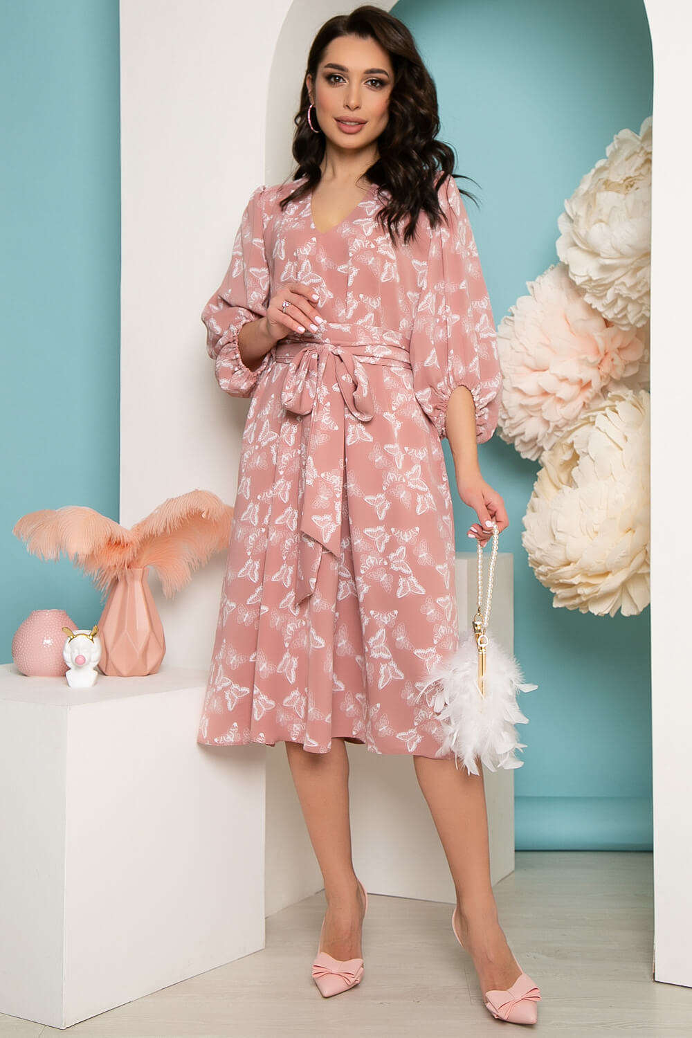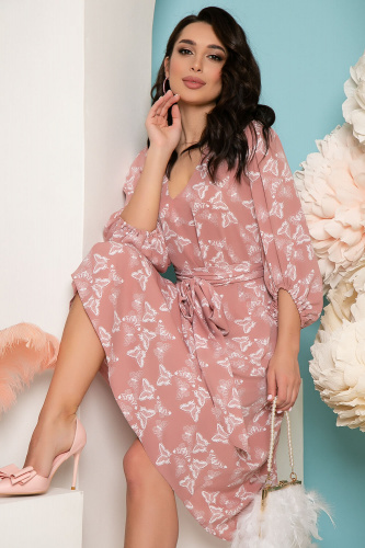 Платье из струящейся ткани - ХИТ продаж! Три метра ткани превратились в шикарное, летящее платье в базовом пудровом цвете с летним принтом - бабочки. Поверьте от Вас не смогут отвести восхищенных взглядов! Платье свободного силуэта. Мягкий V - образный вырез горловины. Интересного кроя рукав - втачной, три четверти, верх присборен, объемный, низ рукава асимметричный на резинке. По спинке отрезная кокетка и декоративные защипы. В комплекте широкий пояс, который можно завязать как кушак или на большой бант.