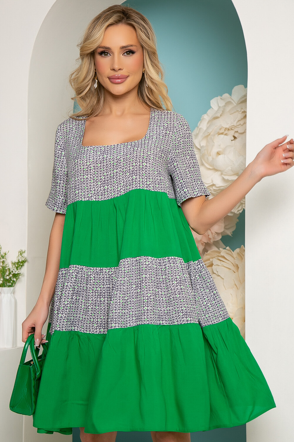 Платье "Милее всех" (грин / грей) П3625