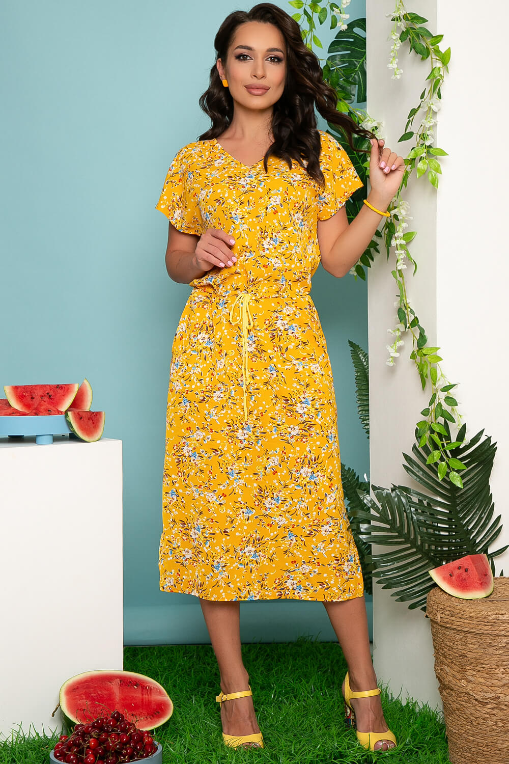 Платье на каждый день из легкой ткани прямого кроя. Талия на кулиске позволяет добиться идеальной посадки по фигуре. Рукав цельнокроенный, V-образный вырез горловины. В боковых швах - карманы, изделие без замков, без подкладки. По бокам разрезы.