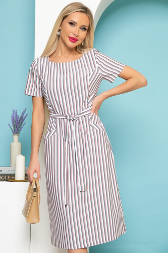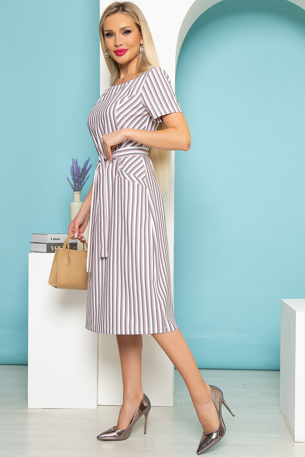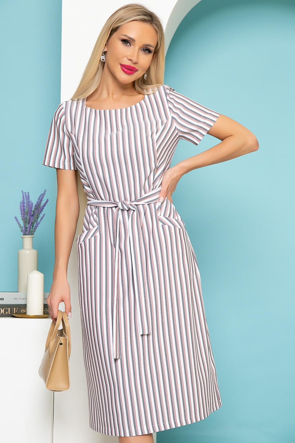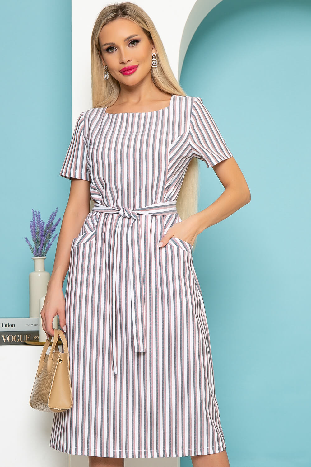 Платье в полоску - стильное и оригинальное изделие в гардеробе любой женщины. Оно поможет акцентировать внимание на красивой фигуре, а также скрыть недостатки нестандартной комплекции. Такое платье прекрасно дополнит Ваш базовый гардероб. Вырез горловины - "деликатное" каре, красиво подчеркнет Ваши ключицы, рукав втачной, короткий. Принт "полоска" визуально вытянет фигуру и сделает стройнее. В боковых швах для удобства карманы. Платье без подкладки и замков. В комплекте пояс из основной ткани.