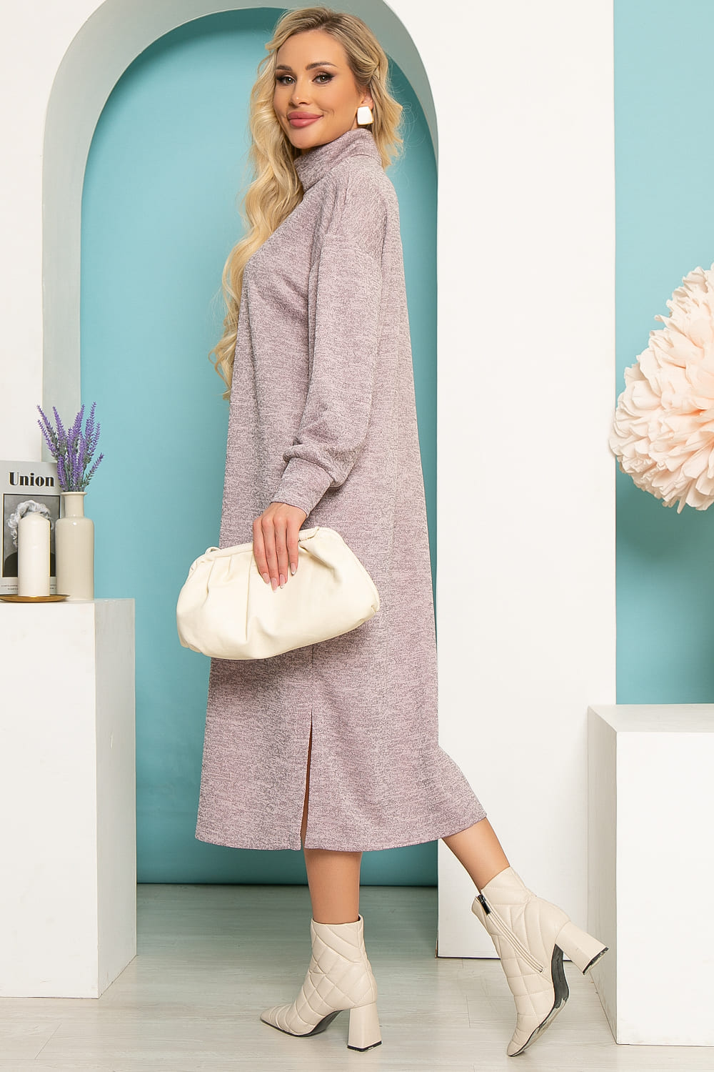 Трикотажное платье длины макси в пыльно розовом оттенке. Универсальное платье на каждый день. Отлично смотрится как с туфлями на каблуке, так и с кедами. Платье свободного кроя, воротник с отворотом. Рукав втачной, свободный, длинный, низ на манжете, линия плеча спущена. Платье можно надеть с пояском, подчеркнув талию, или носить расслаблено в стиле оверсайз. По бокам юбки разрезы. Пояс в комплекте.