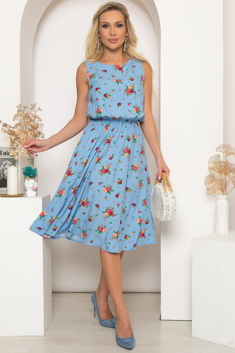 Платье-сарафан из штапеля - незаменимый вариант для Вашего летнего повседневного образа. Талия на мягкой резинке, длина - миди, вырез горловины - мягкая лодочка.