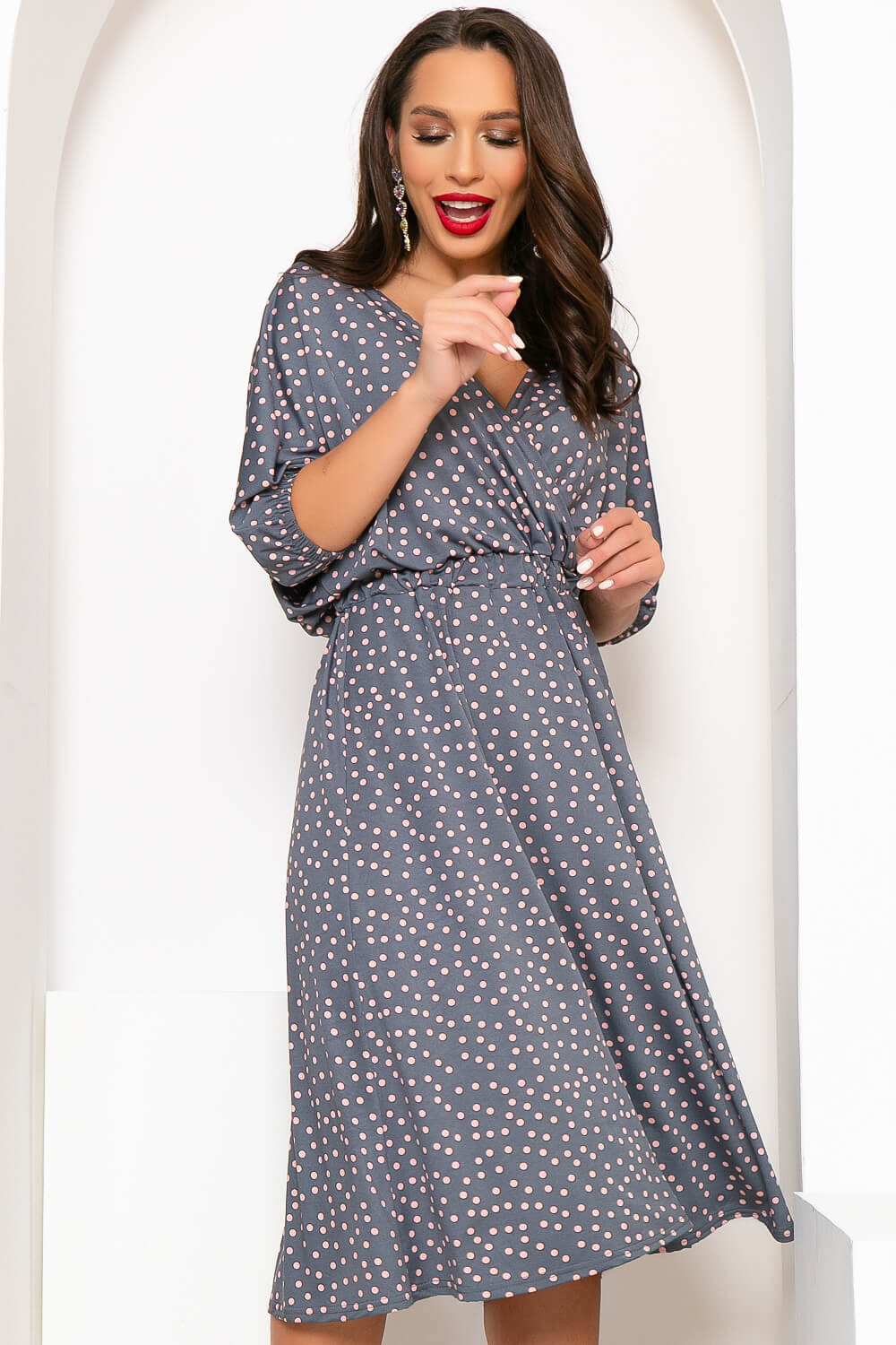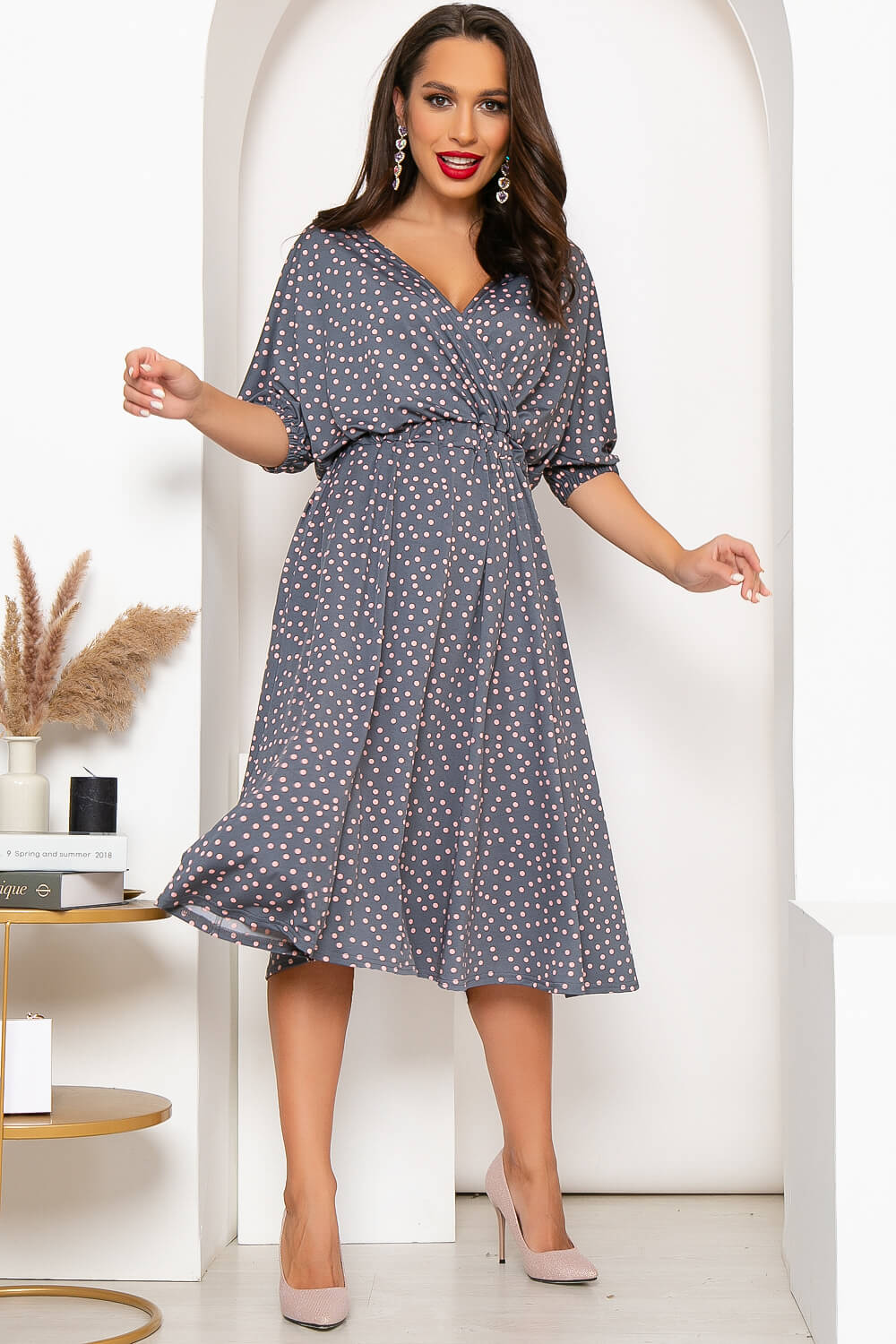 Платье, собравшее в себе все элементы женственного кроя: длина миди - идеальная длина для модниц любого роста и веса, струящаяся ткань, красивый вырез, скроенный на запах - всё это позволит создать неповторимый образ! Рукав платья цельнокроенный, укороченный, низ на резинке. Пройма - "Летучая мышь". Талия на широкой, плотной резинке.