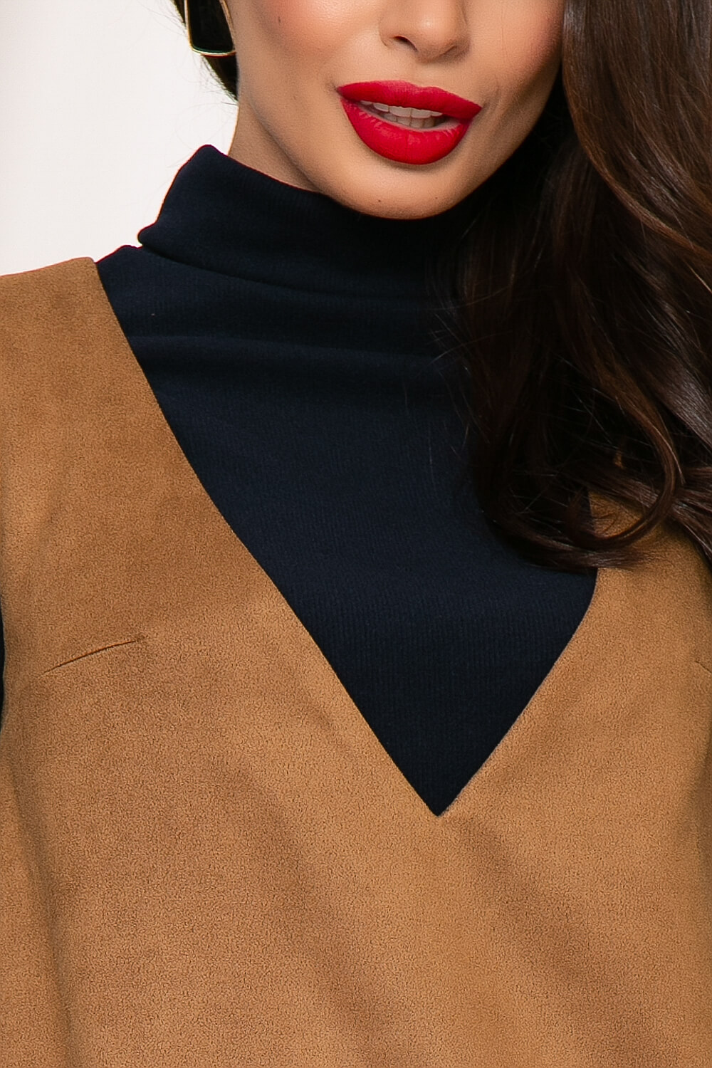 Платье-сарафан длины мини в трендовом оттенке кэмел. Благодаря текстуре ткани добавляет гармоничной теплоты в ваш повседневный образ. Эта базовая модель сарафана обязательно должна быть в гардеробе каждой стильной леди, так как легко и красиво сочетается с множеством вещей: водолазками, лонгсливами, мягкими джемперами и блузами. Создавайте гармоничные тёплые образы с платьем-сарафаном цвета "Кэмел".