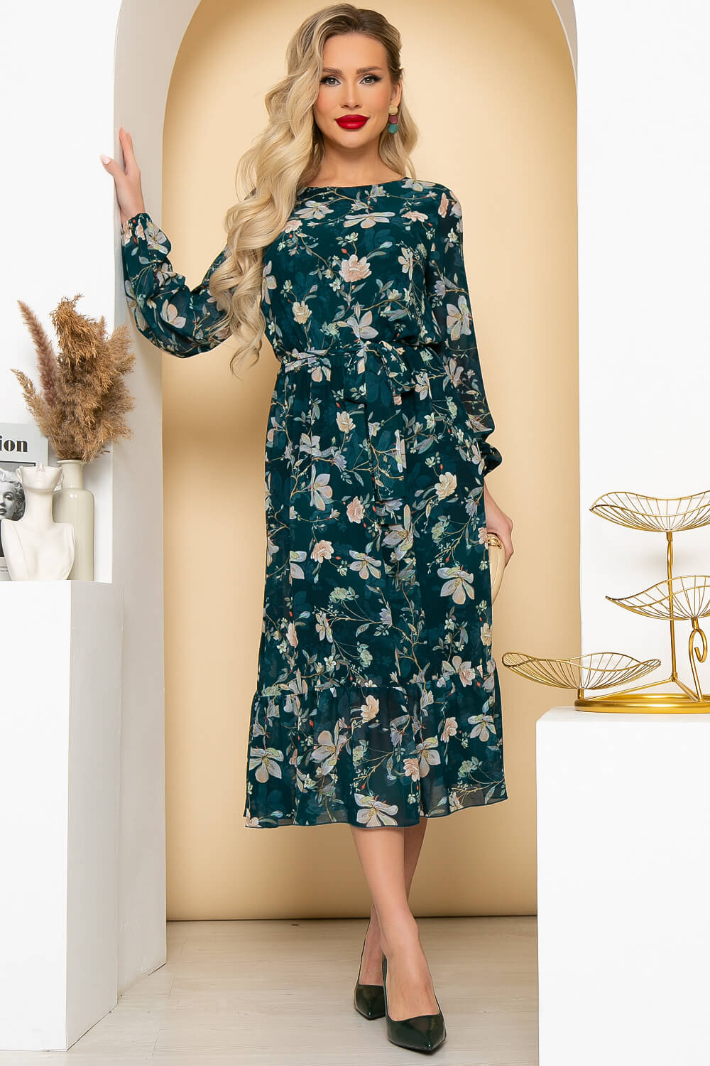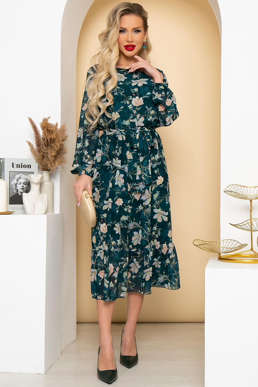 Летящее платье из шифона с цветочным принтом украсит Ваш образ на прогулке или неформальной встрече. Шифоновые платья хороши тем, что актуальны круглый год, а также выглядят они женственно и элегантно. Платье свободного кроя, рукав втачной, длинный на резинке. Платье на подкладке. Пояс из основной ткани входит в комплект.