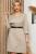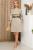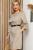 Платье в деловом стиле с оригинальным дизайном. Верх платья скроен с имитацией запаха и ассиметричным отложным воротником. По низу юбки выполнен декоративный элемент, перекликающийся с верхней частью платья. Втачной рукав, три четверти с широким отворотом. В комплект входит пояс с пряжкой.