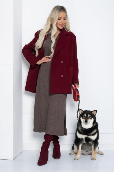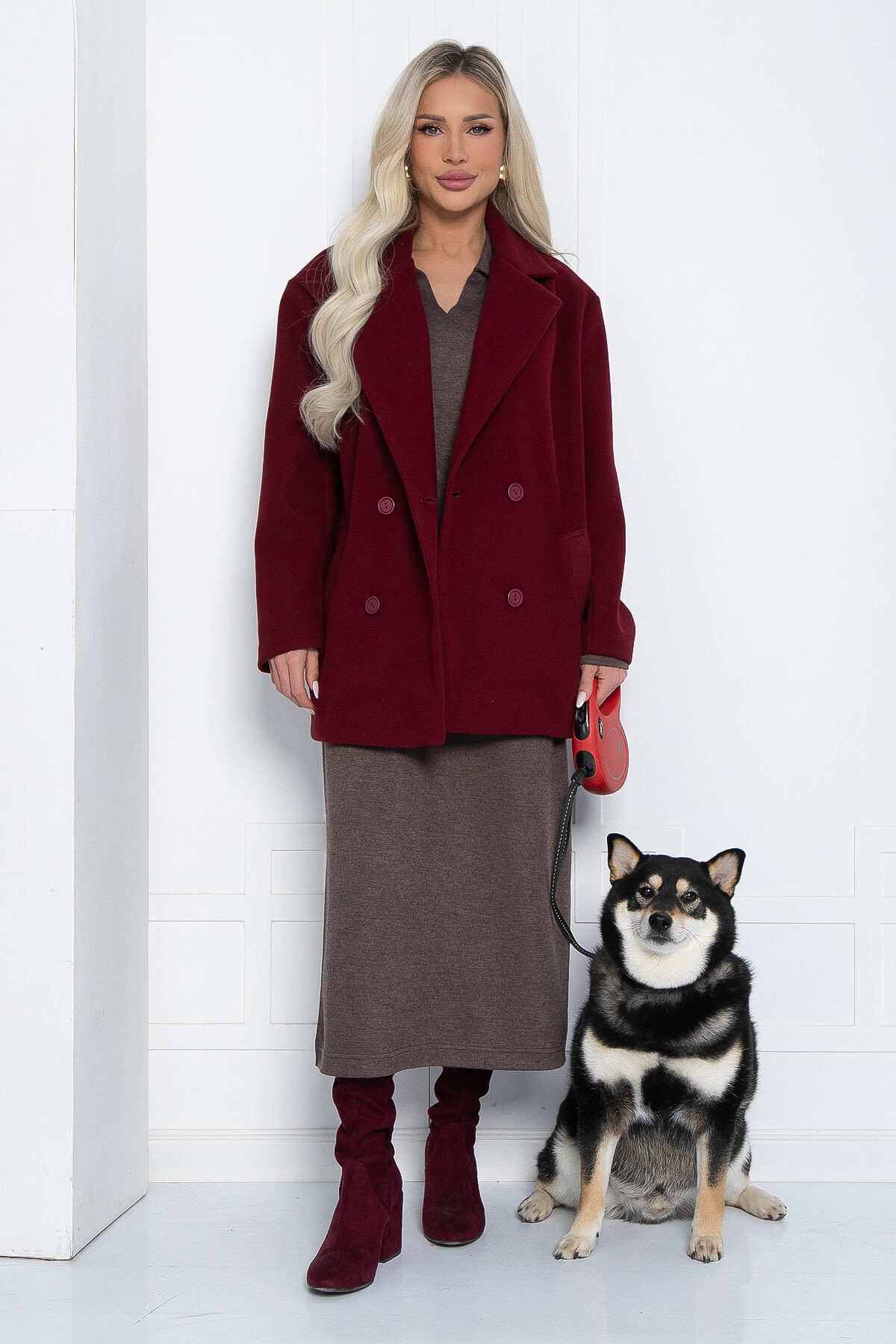 Пальто выполнено в стиле оверсайз, что обеспечивает комфорт и свободу движений. Его выразительный двубортный английский воротник придаёт образу элегантность. Это пальто станет настоящей находкой для женщин, которые ценят удобство и стиль. Его потрясающий бордовый цвет легко сочетается с самыми разнообразными вещами и необычными аксессуарами. Однако не забывайте о гармонии оттенков в вашем наряде.