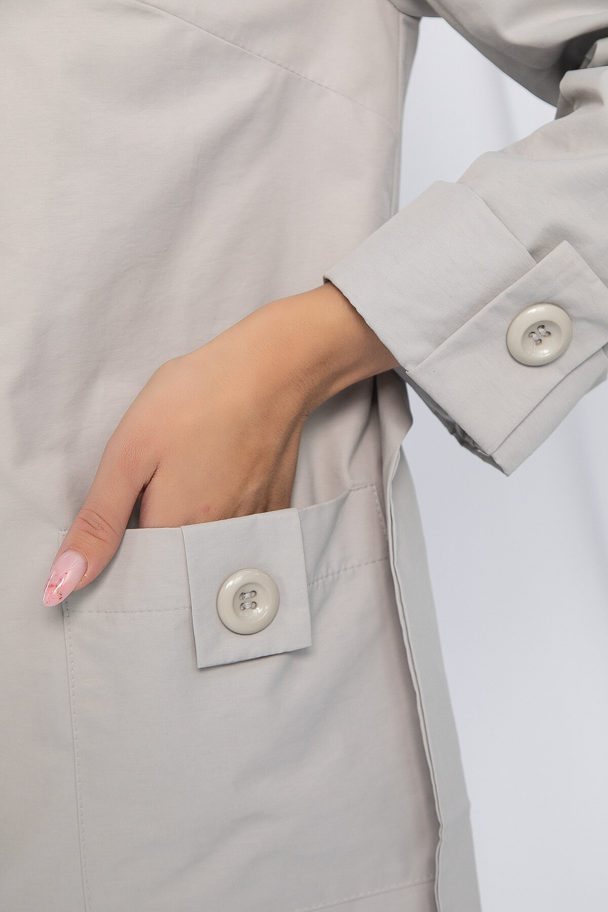 В прохладную погоду этот плащ станет незаменимым элементом вашего гардероба! Стильный и функциональный предмет одежды имеет накладные карманы с патами в виде отделки, закреплены пуговицами, что придаёт ему особый шарм. Для того чтобы подчеркнуть талию, предусмотрен съёмный пояс, который добавляет образу женственности и элегантности.