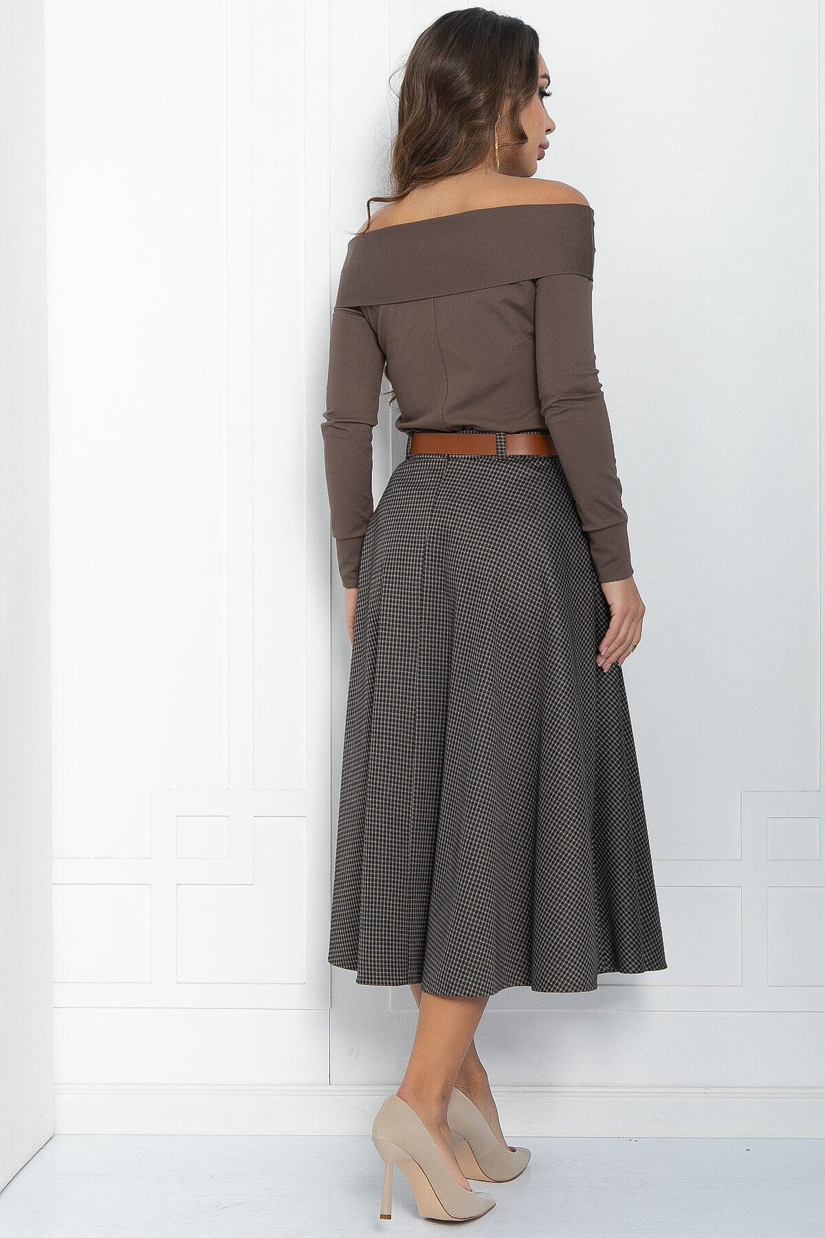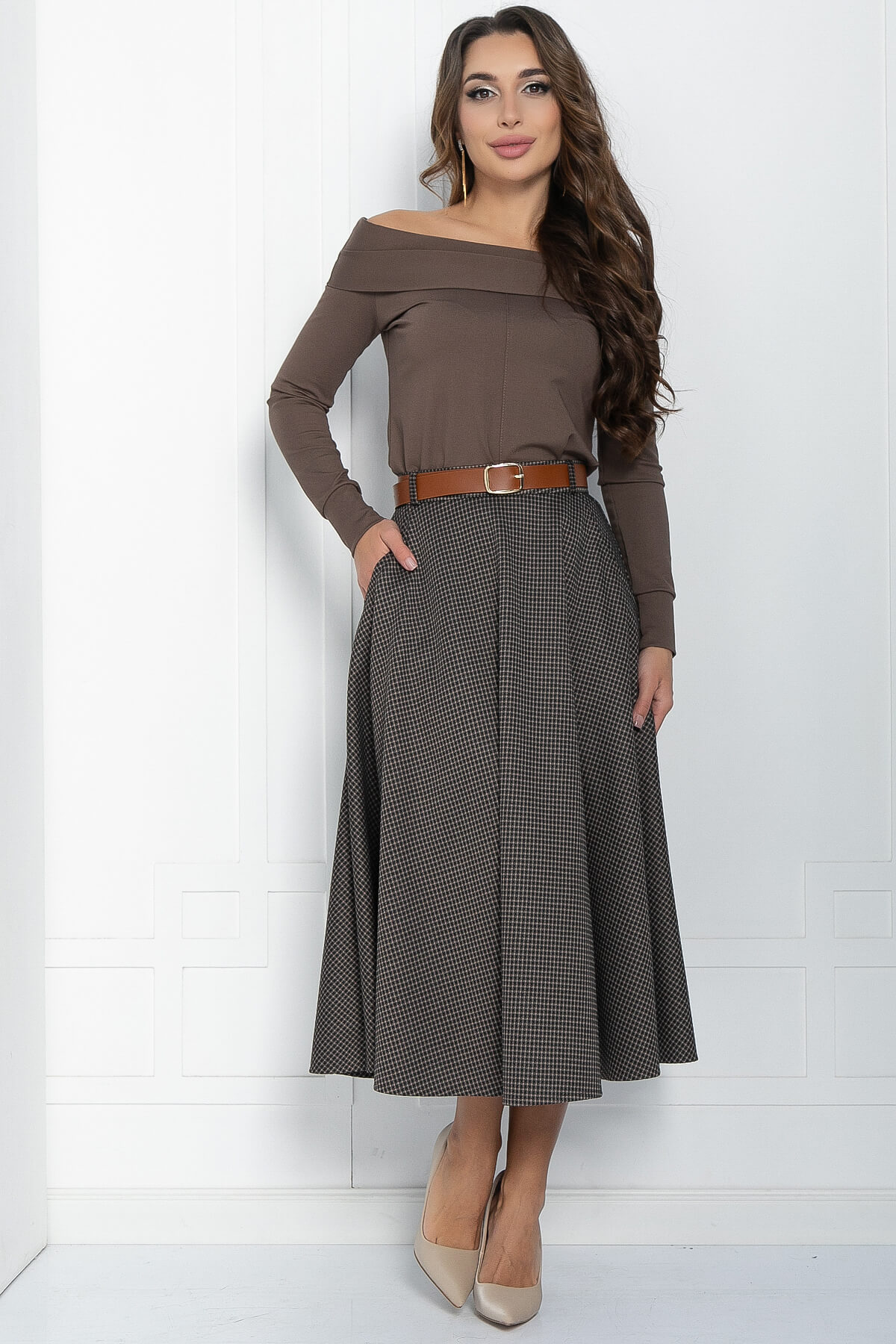 Юбка длиной ниже колена — это базовая вещь, которая должна быть в гардеробе каждой стильной женщины. Она прекрасно подходит для создания модных повседневных образов в любое время года. Весной, зимой или летом эта универсальная юбка станет незаменимым элементом вашего гардероба. Её фасон — полусолнце, с боковыми карманами, а пояс со шлёвками и кожаным ремешком делает её удобной и практичной. Ремень идёт в комплекте.