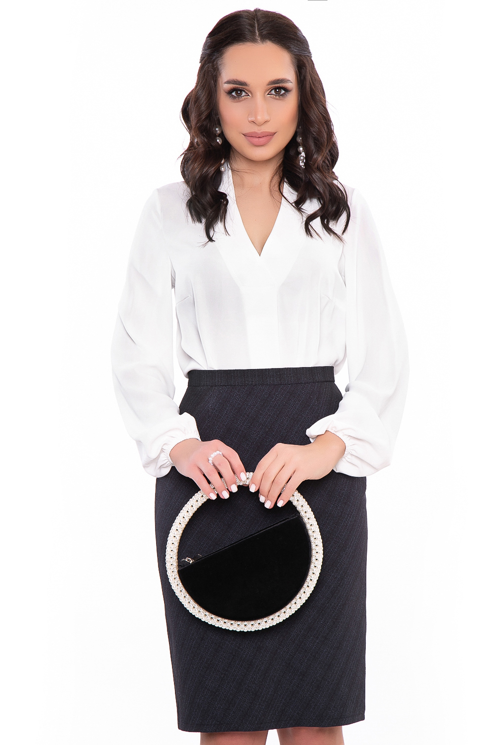 Классическая юбка прямого кроя с притачным поясом. Застёгивается на молнию по спинке, сзади на юбке - шлица.