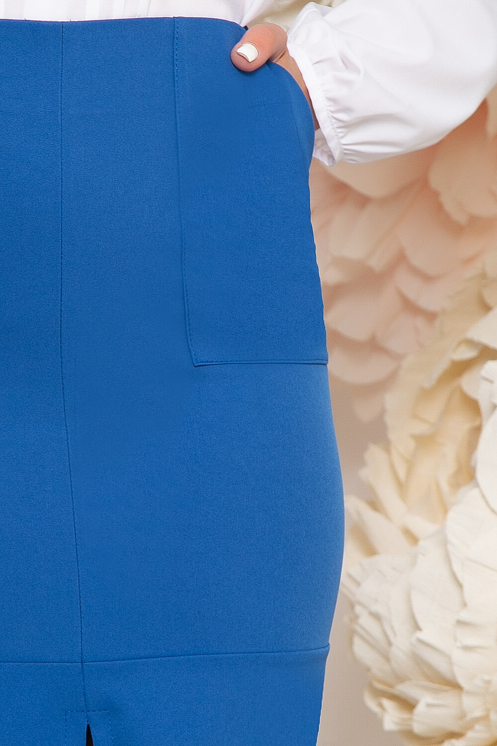 Юбка оригинального кроя с отрезной нижней частью по переду и спинке. По переду выполнен разрез, красиво приоткрывающий ножки, есть накладные карманы. По спинке застёгивается на потайную молнию. Юбка без подкладки.