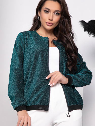 Бомбер из трикотажа с люрексом сделает вас звездой вечера! Это отличное дополнение к образу, который придает чувство праздника. Рукав длинный, втачной, по низу манжет. Изделие на молнии. Надевайте его на базовые топы, футболки или лонгсливы и окружающие точно не оставят вас без внимания!