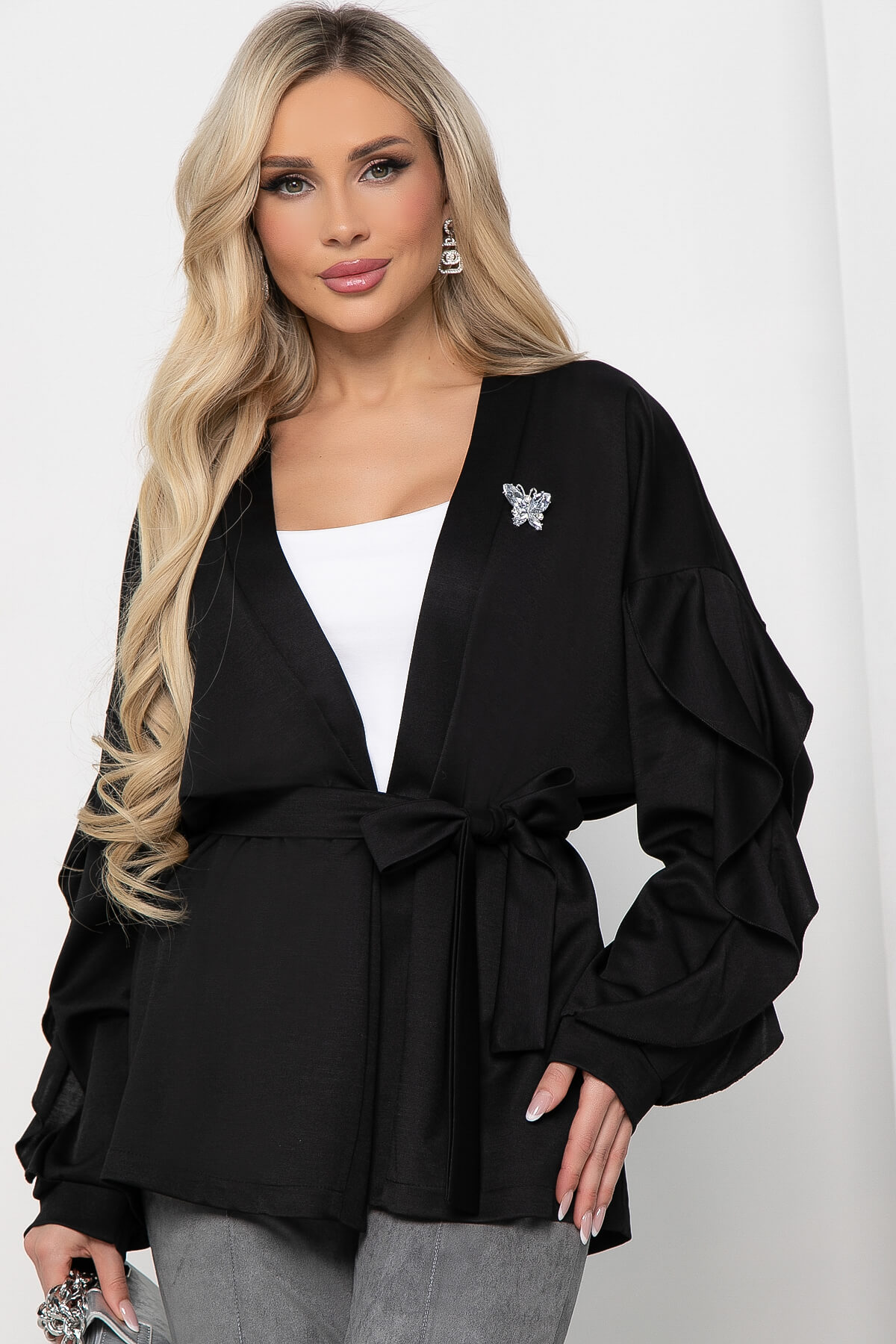 Жакет из трикотажной ткани, в популярной палитре обладает эластичностью, поэтому максимально комфортен. Изделие украшают акцентные декоративные рюши на рукавах. Жакет OVERSIZE, что позволяет скрыть недостатки фигуры и подчеркнуть достоинства благодаря поясу, который идет в комплекте. Идеальный вариант, как на каждый день на работу в офис, так и для праздничного вечера. В комплект входит брошь "бабочка".