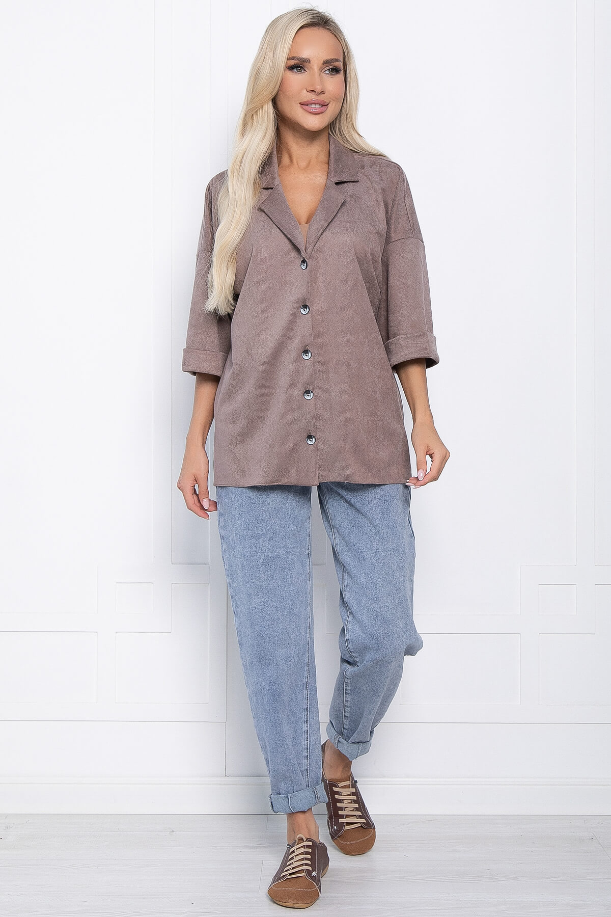 Представляем вам стильную новинку — жакет из микровельвета, который станет отличным дополнением к любому вашему образу! Подойдет для работы в офисе, деловых встреч и мероприятий. Этот жакет можно носить как с водолазкой, топом или футболкой, так и просто поверх нижнего белья, застегнув его на пуговицы. Жакет имеет отложной воротник, который плавно переходит в планку на пуговицах. Спущенное плечо, рукава с манжетами, по бокам разрезы.