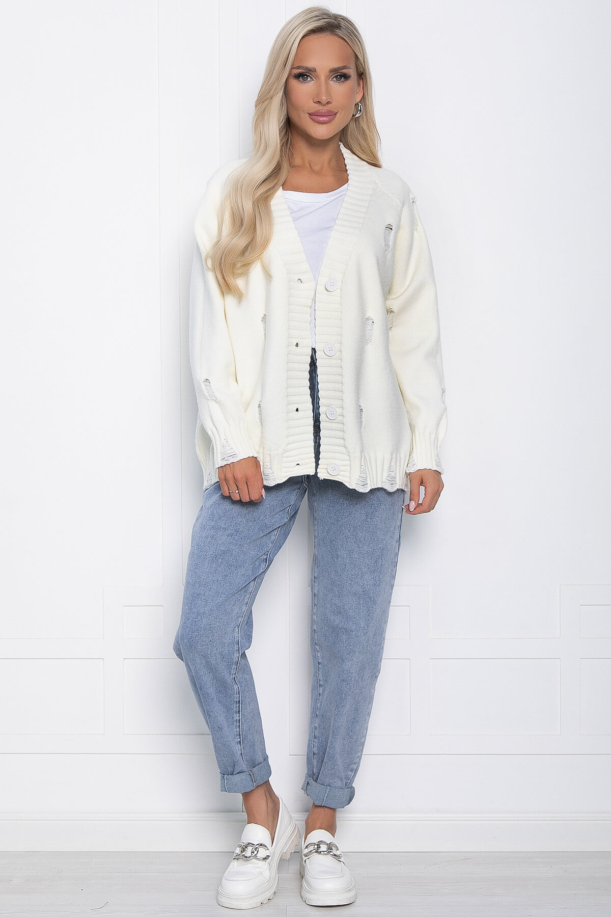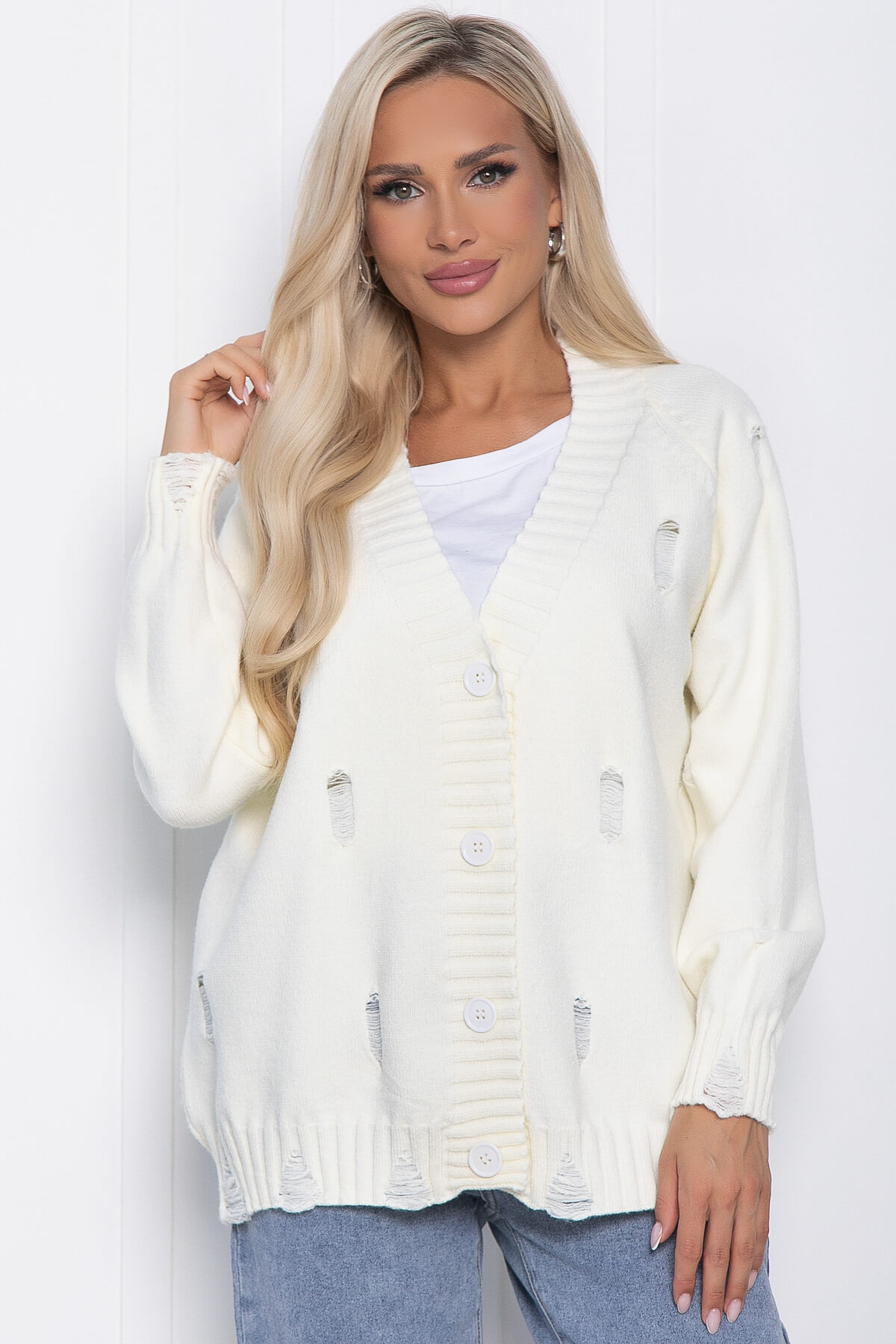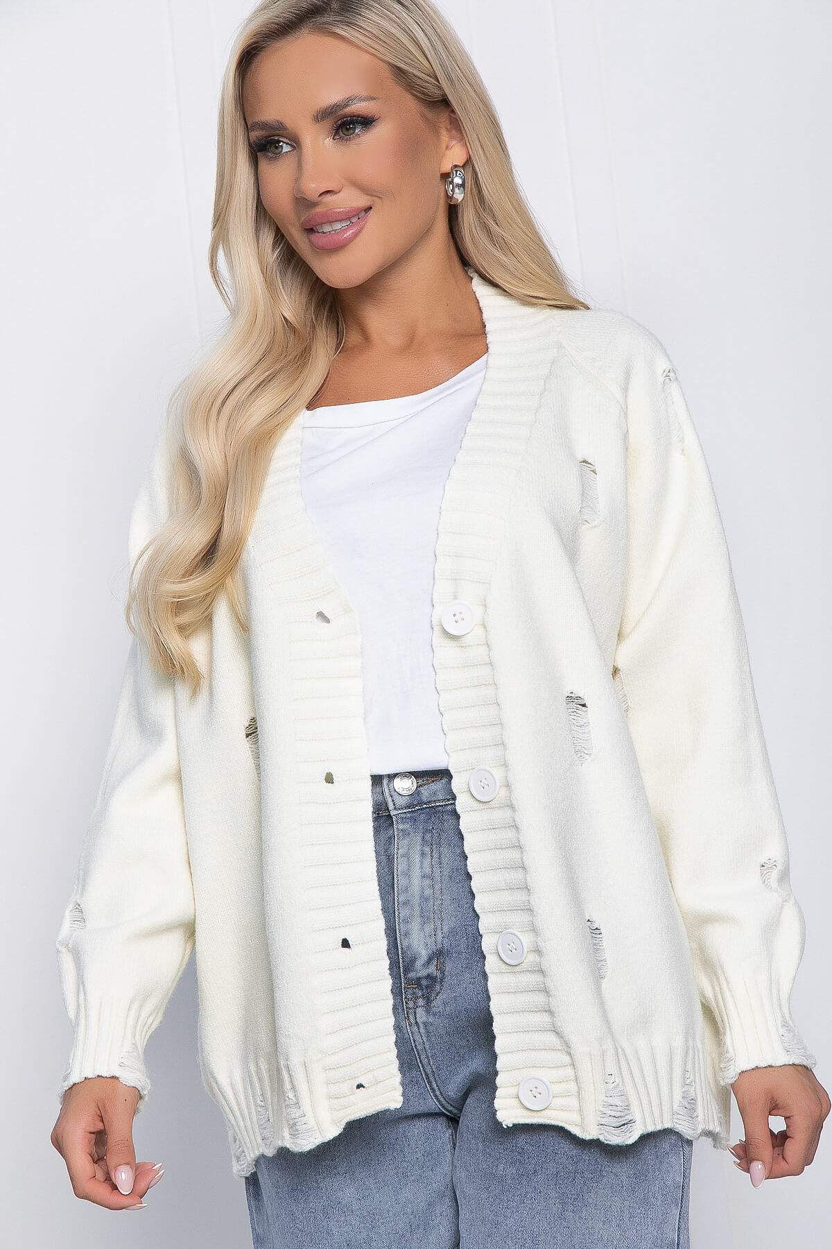 Кардиган на пуговицах с рваными элементами — это универсальный предмет гардероба, который можно носить в самых разных ситуациях: в школе, в офисе, на деловой встрече или празднике. Его однотонный оттенок позволяет легко сочетать с другими вещами. А благодаря оверсайз силуэту он будет удобен для беременных и будущих мам.