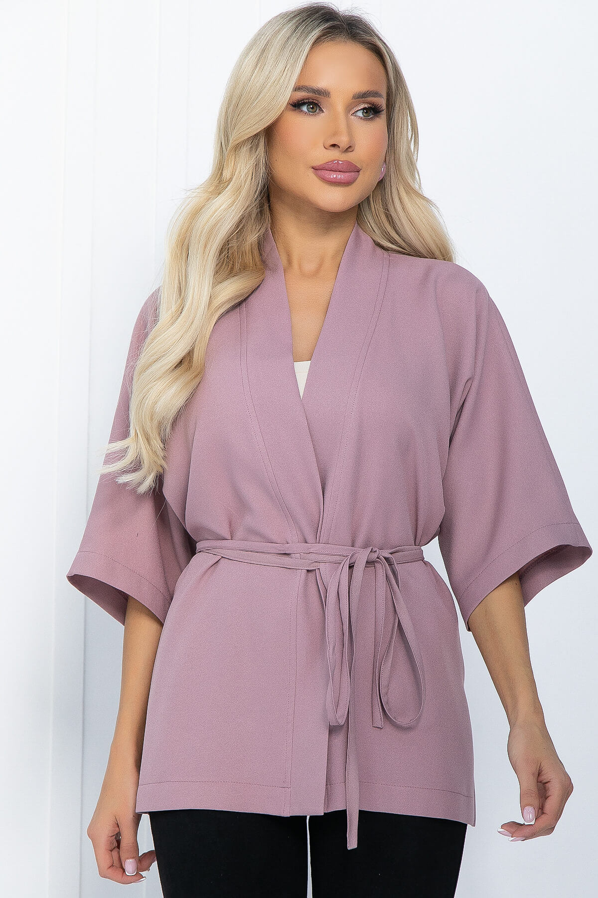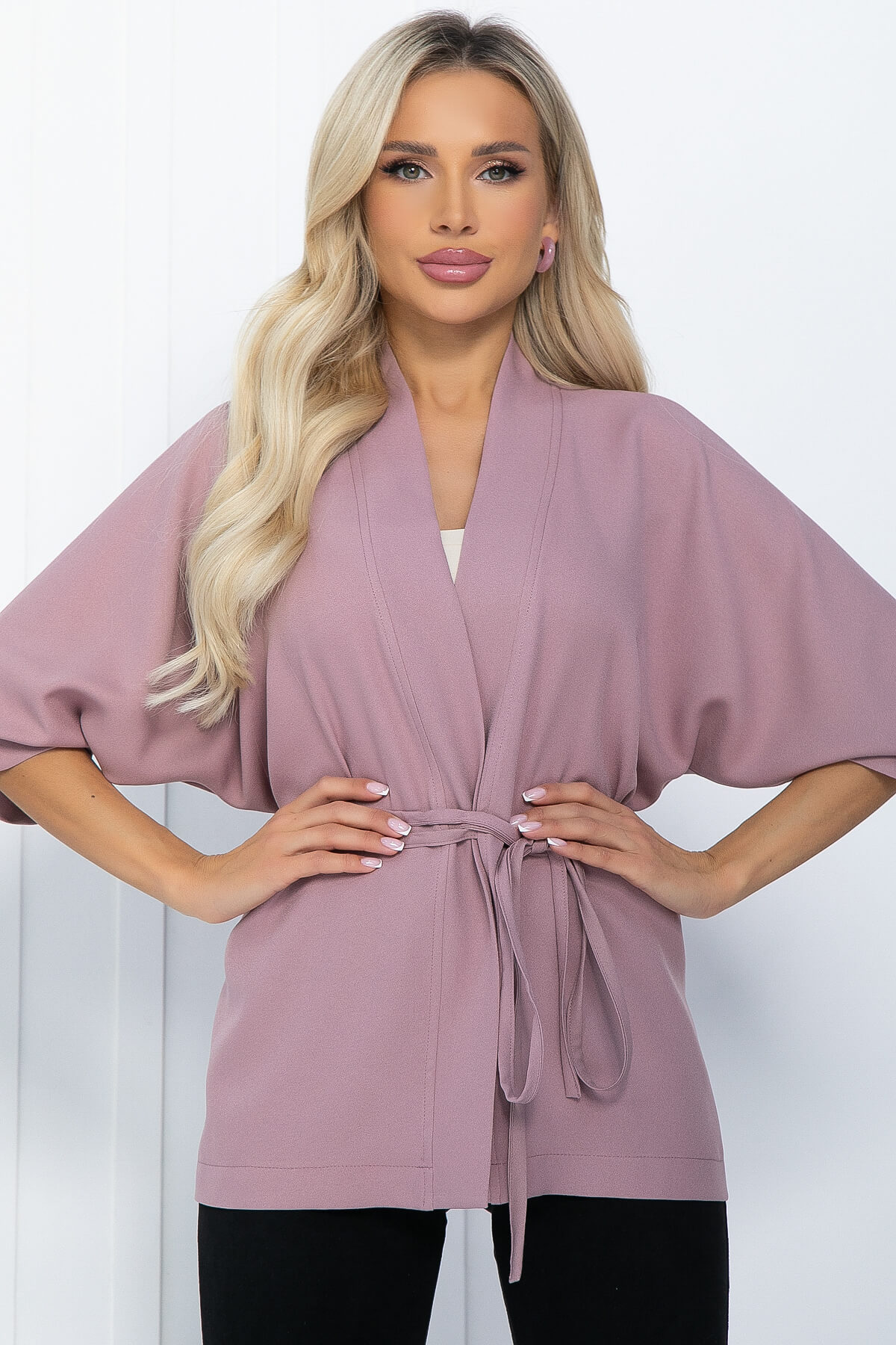 Жакет на запах в стильном розовом оттенке, рукав ¾ , по боковому шву маленькие разрезы. По переду пришиты два шнурка в виде поясков, их можно использовать, как декоративные элементы - завязать по отдельности и жакет будет на распах или завязать их на талии. Отлично стилизуется с топами и футболками.