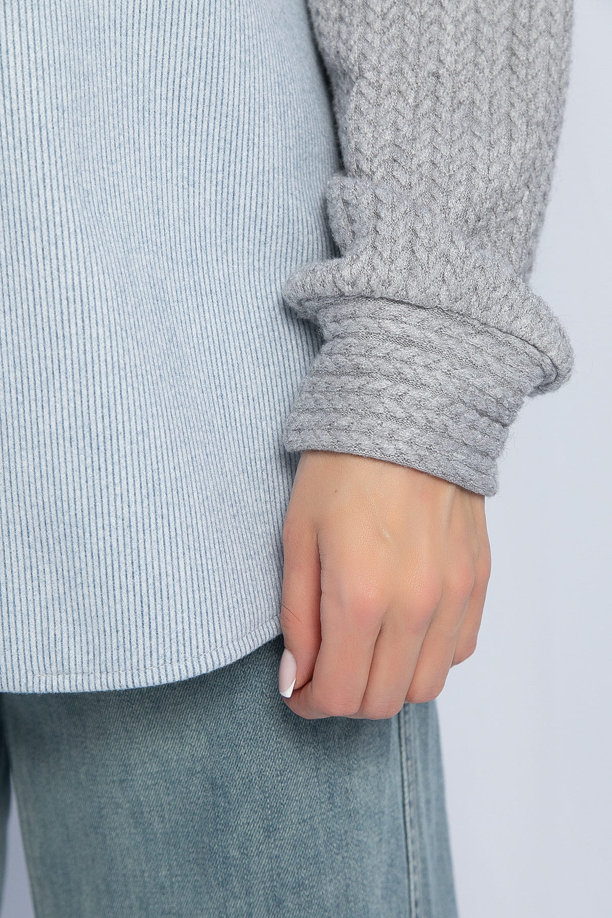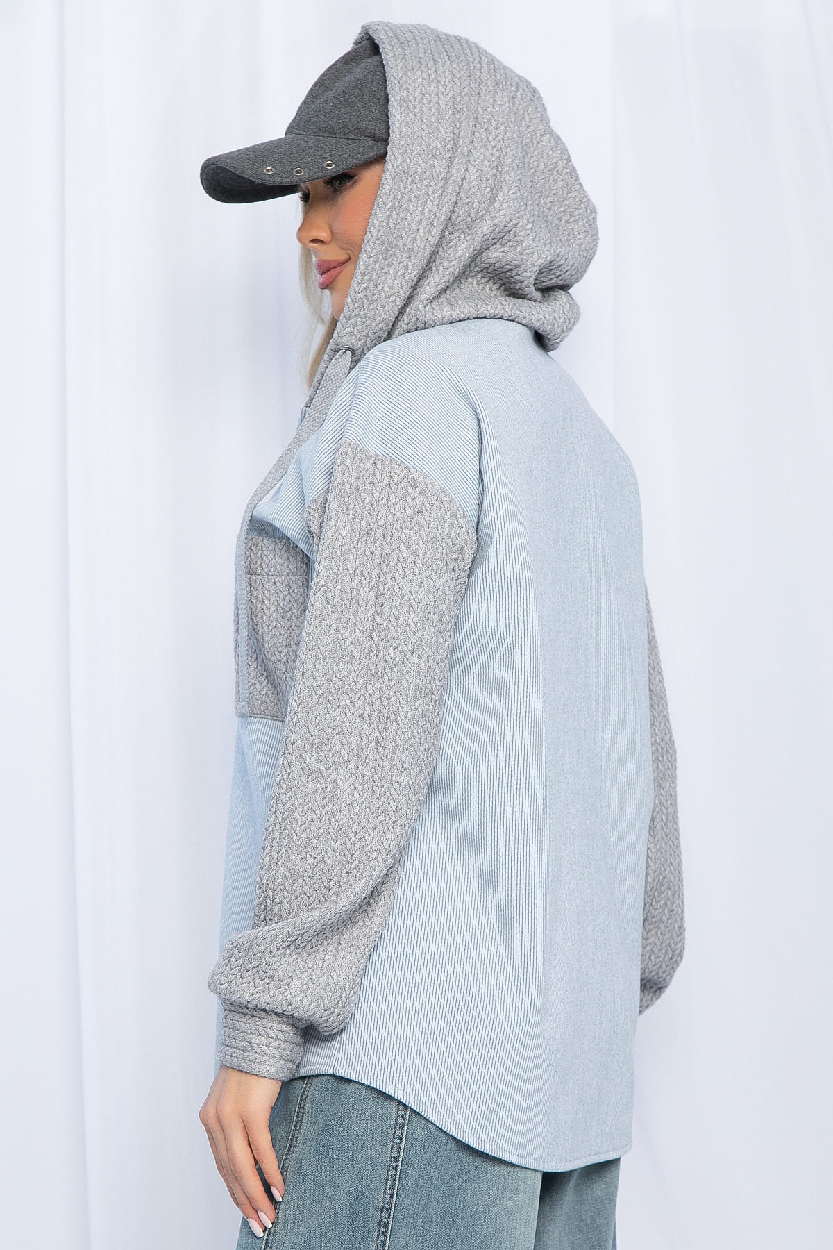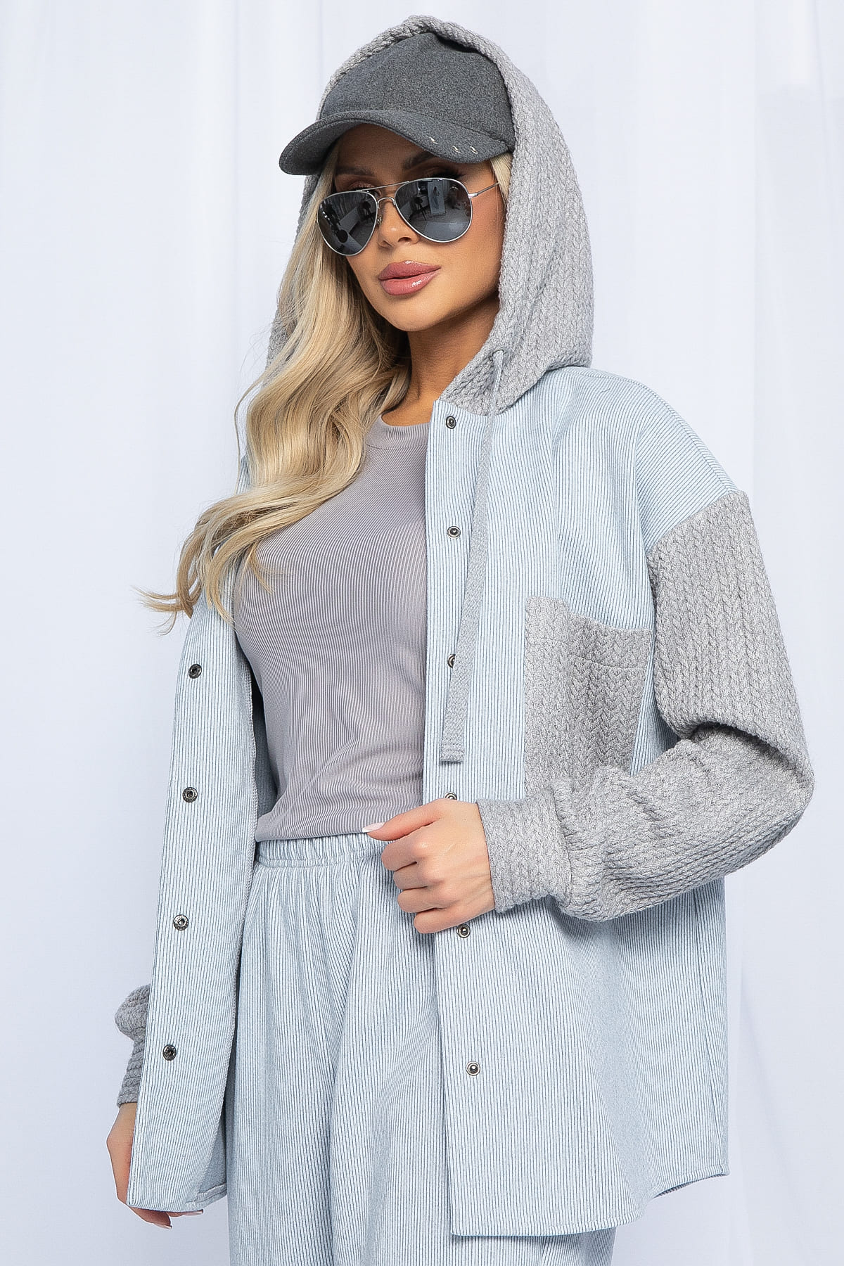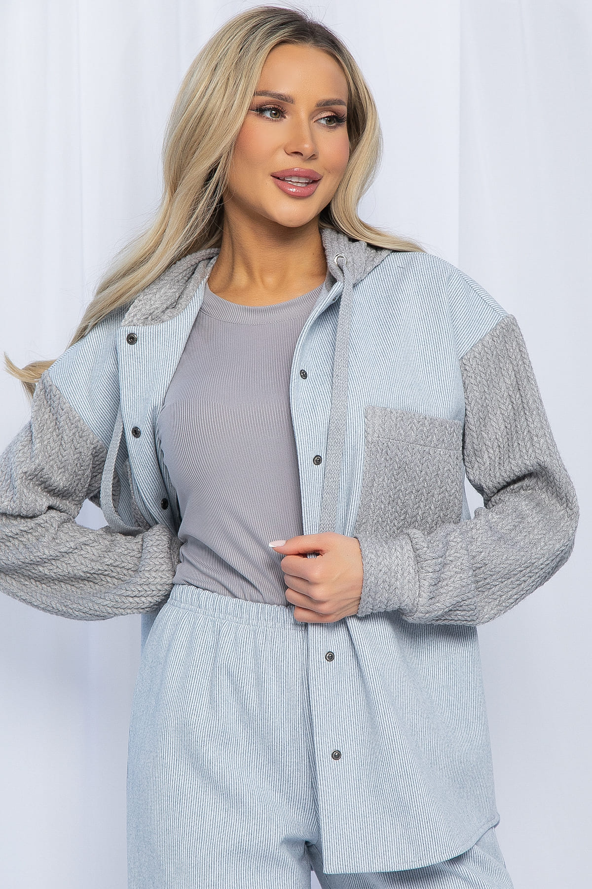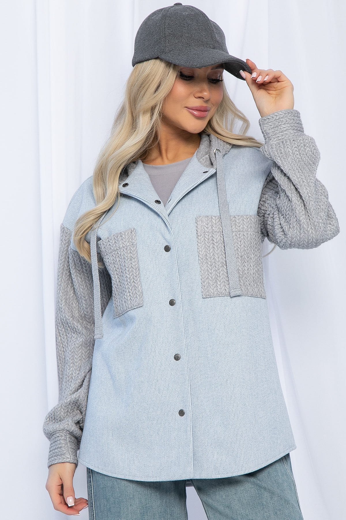 Рубашка из плотной ткани в модную узкую полоску на кнопках, с длинным рукавом, накладными карманами и капюшоном из объемного трикотажа прекрасно подходит для повседневного многослойного образа. Сочетая в себе комфорт и уют, она создает новый тренд в одежде и свежий альтернативный вариант для гардероба. Идеально подходит к джинсам, брюкам и шортам.