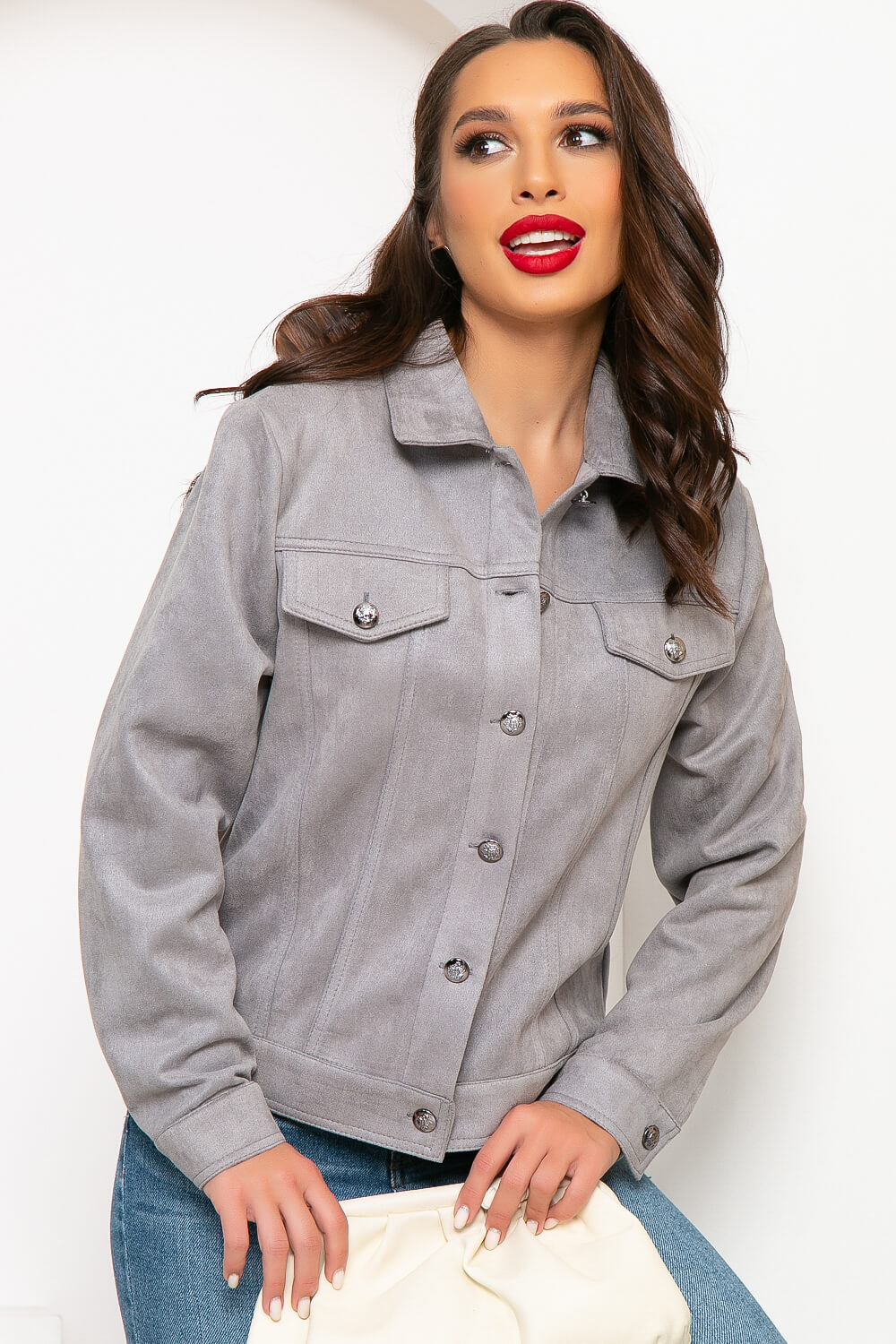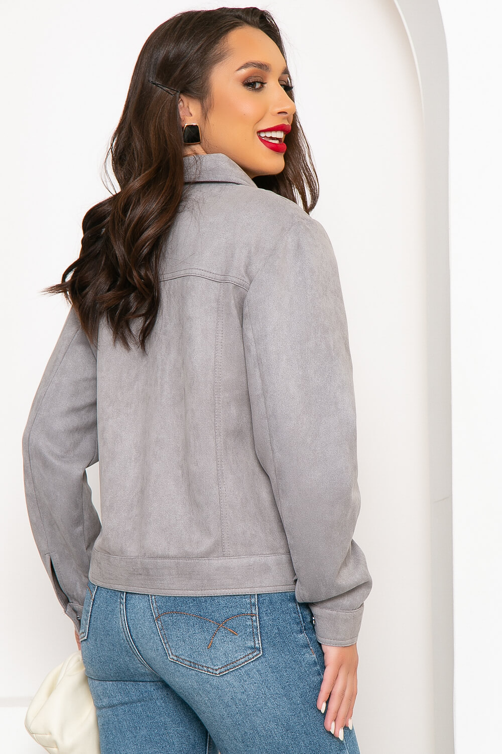 Жакет из замши в базовом сером оттенке подойдёт практически к любым цветовым сочетаниям Вашего гардероба. Его можно надеть поверх платья, накинуть на плечи и дополнить образ с джинсами и добавить тепла и комфорта в прохладную погоду. Жакет прямого кроя, по переду застёгивается на пуговицы. Также, по переду имитация накладного кармана, оформленного клапаном. Жакет без подкладки.